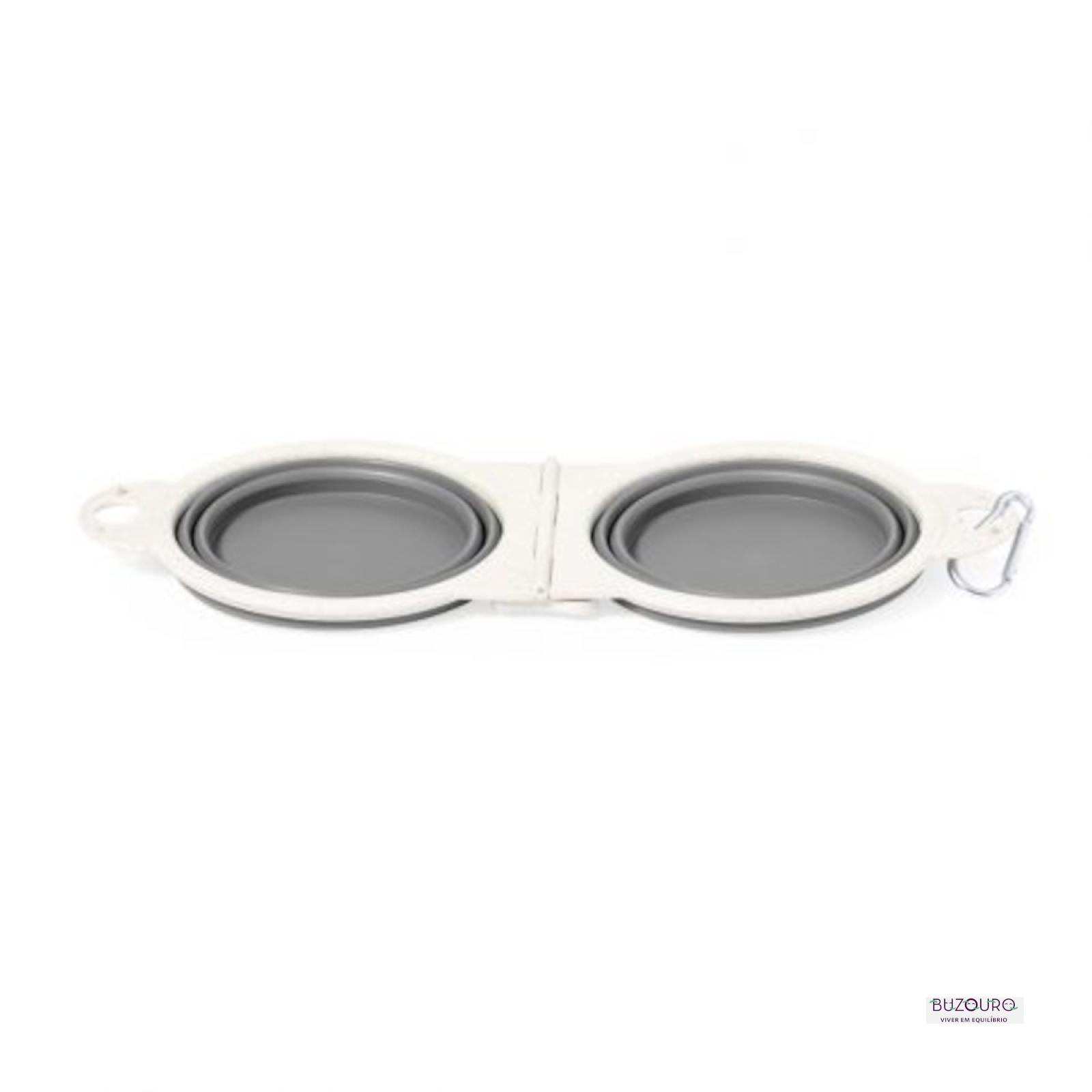 Tigela dobrável para animais de estimação feita em palha de trigo. Design compacto, com dois compartimentos e perfeita para usar em qualquer lugar. Inclui mosquetão de transporte prático e fácil de colocar. Apresentada em saco individual reciclado, a palha de trigo incentiva a utilização de matérias-primas naturais, reduzindo assim as emissões poluentes.