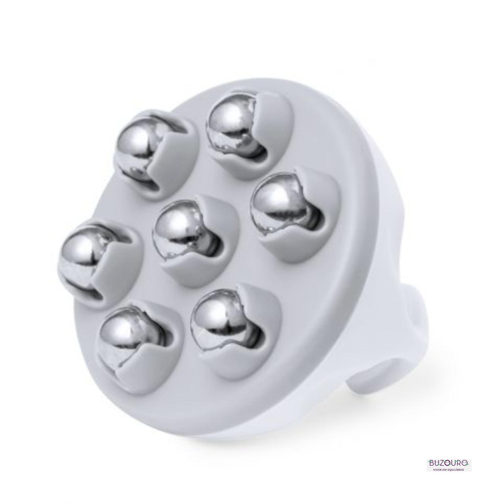Massageador em abs resistente com bolas de metal. Projetado para proporcionar alívio e bem-estar. Seu cabo ergonómico garante um manuseio confortável, enquanto as suas esferas metálicas, com efeito, frio, auxiliam na absorção de cremes, relaxando a pele cansada. Apresentado em caixa individual de design kraft.