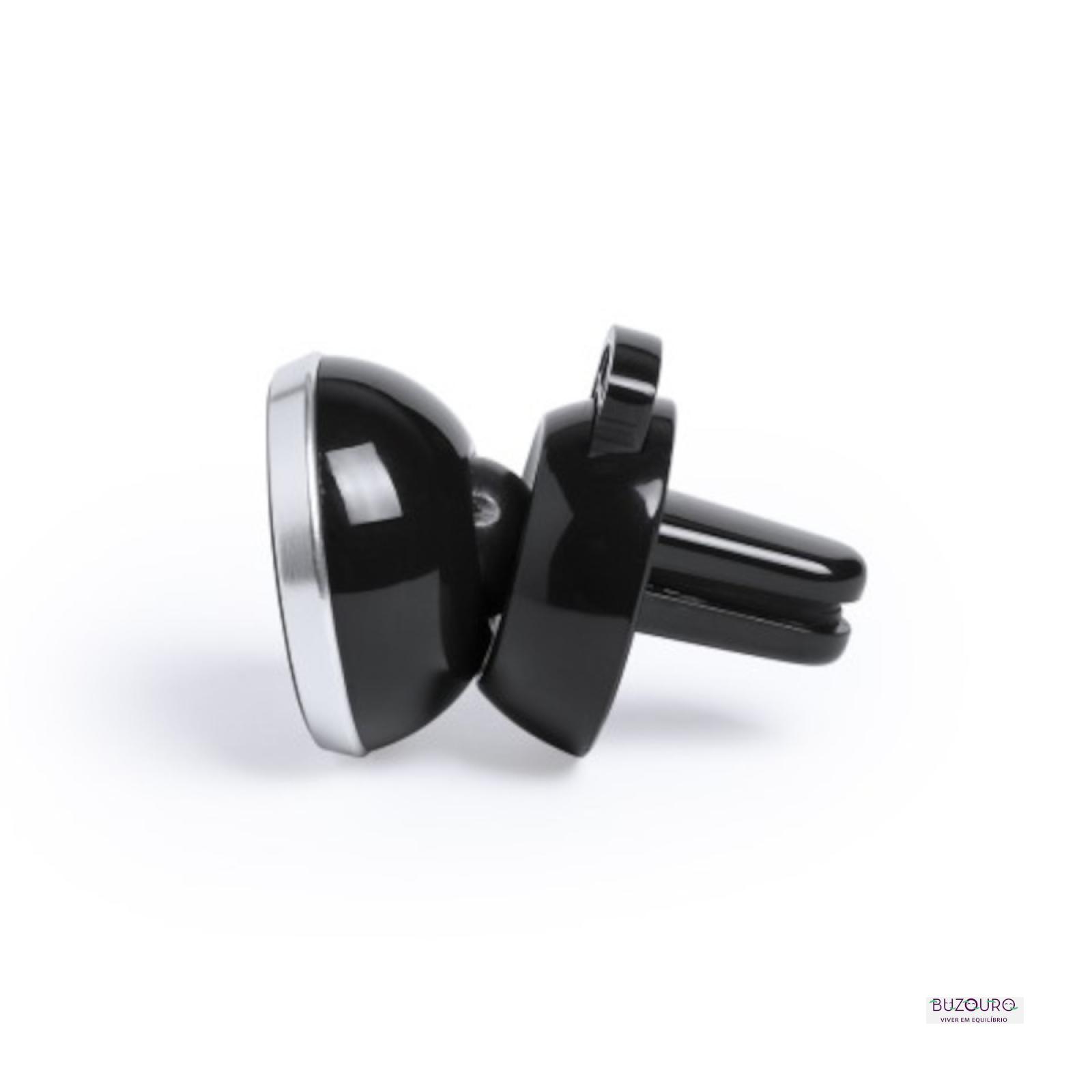 Suporte magnético para smartphone com design minimalista. Elegante acabamento de alumínio preto em combinação com cores metálicas marcantes. Com sistema de fixação telescópico para grelha de ventilação de automóvel e fixação de adesivo para smartphone. Apresentado em caixa de design atrativo.